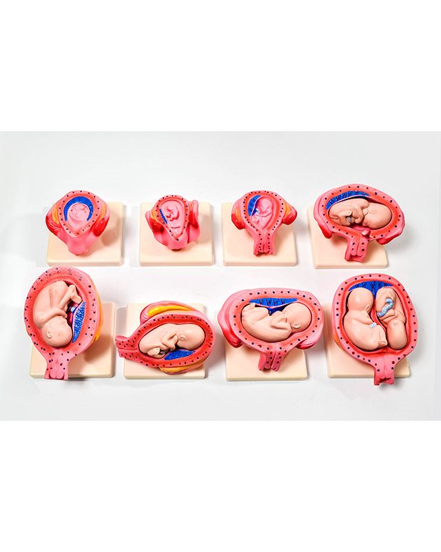 Razvojne faze fetusa i embriona pretstabljene su kroz set od 8 modela materice so fetusom i to: tri modela za prva tri meseca razvoja fetusa i pet modela razvoja embriona. Fetus i embrion mogu da se izvade kako bi se posmatrali. Izrađen od plastike.