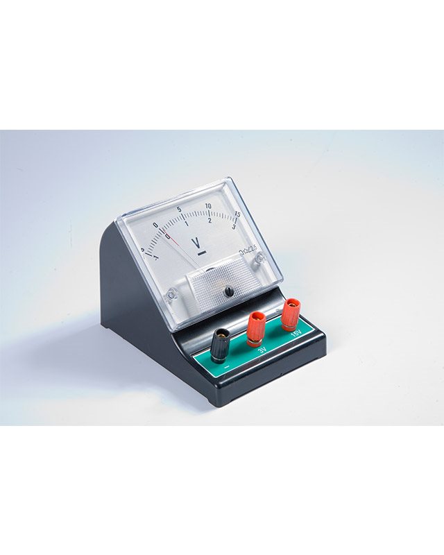 Voltmetar, uređaj za merenje električnog napona, sa mernim područjem 1~0~3 V 5~0~15 V; osetljivost 1 mA. Izrađen od plastike