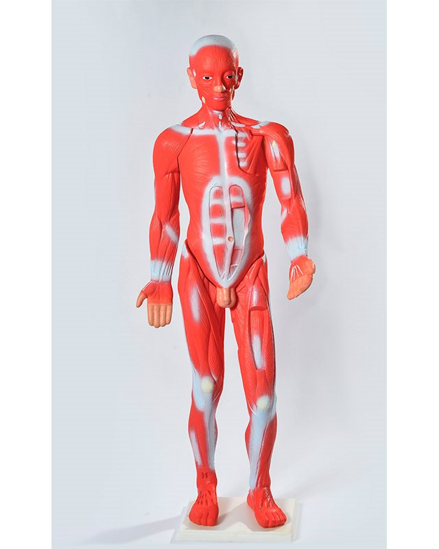 Model ljudskog tela (85 cm): predstavljena je muskulatura čoveka. Sastavljen iz 4 dela koji prikazuju površinske i unutrašnje mišiće, krvne sudove i nerve. Ima kvadratnu podlogu. Izrađen od plastike.